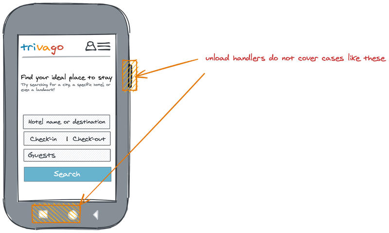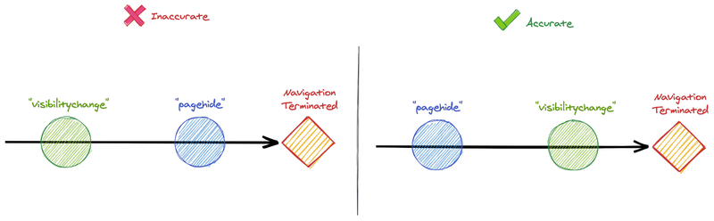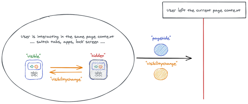 To cover this portion of interactions, we decided to combine the visibilitychange event with another one called pagehide . We will not go into details about this Window event, but only mention that it is fired when the “current page” entry changes in a session, making up for our case in Safari.